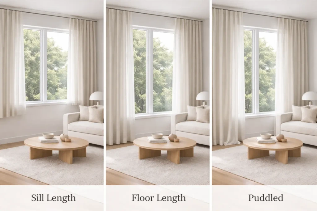 Avoid curtains that are too short, as they can make the room look unfinished.